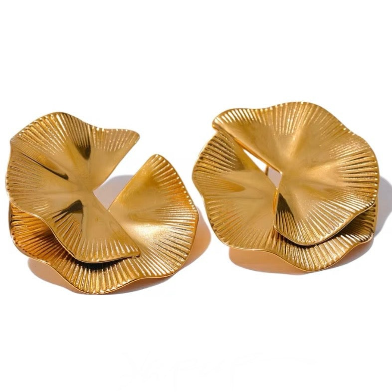 Ces boucles sculpturales rappellent la puissance des formes organiques, comme une feuille d’or figée dans le vent.