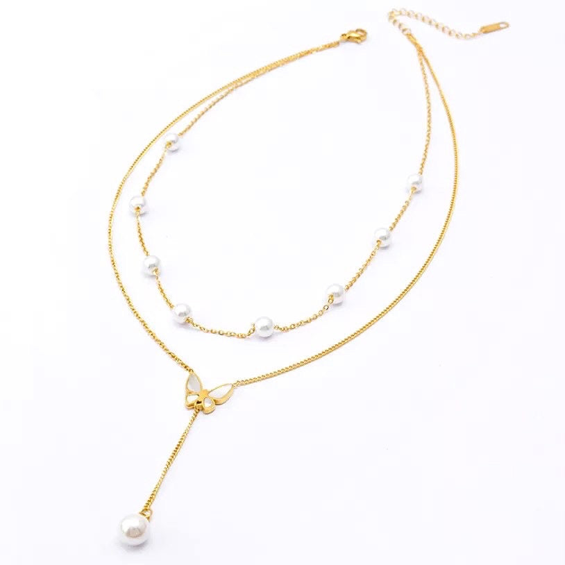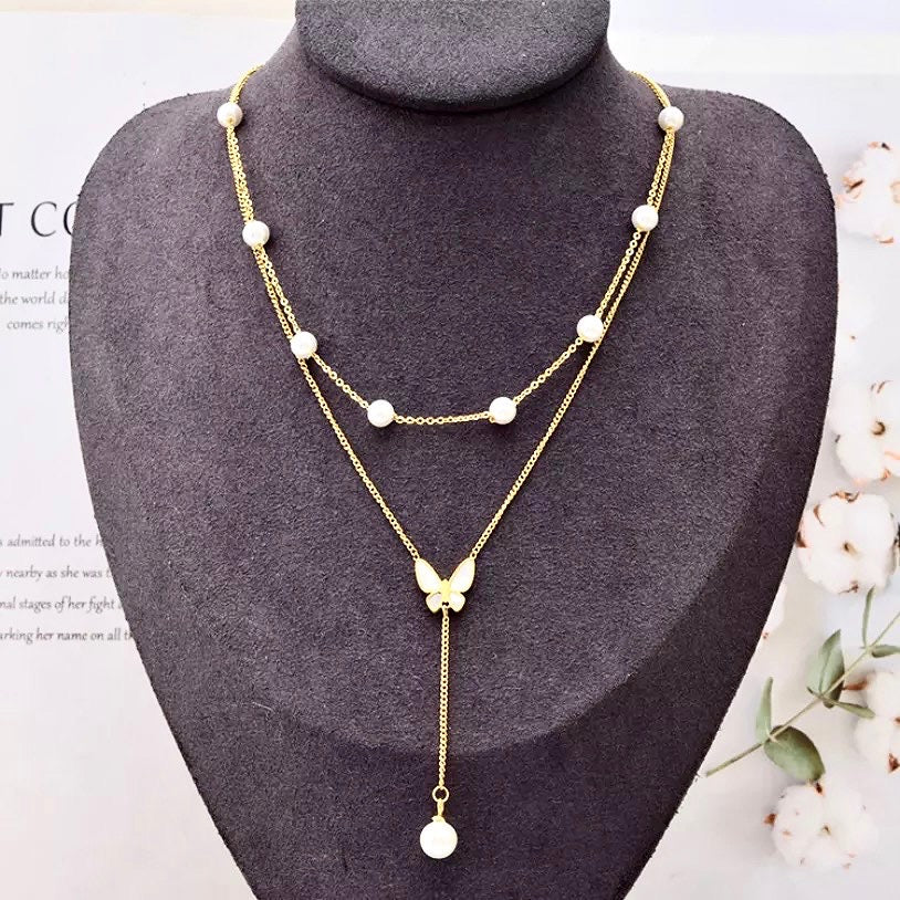 Collier en perles avec pendentif papillon en acier inoxydable